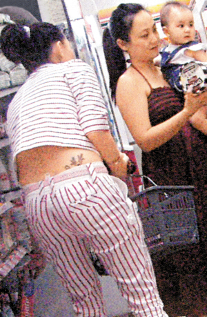 日前张柏芝再被香港媒体拍到凸肚逛便利店,屁股变大、走路变慢的她,买东西时弯腰露出腰间文身,港媒指从其体态来看,怀孕可能性很大,但张柏芝毕竟已经有好一段时间没有出来拍戏,养尊处优的她,发胖导致身材走样也很正常,看来过一段时间就会有定论。