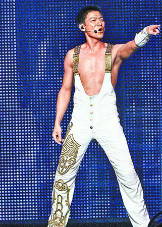 盼了6年,台湾歌迷终于等到刘德华!昨晚他在台北小巨蛋开唱,47岁的他像一条活龙,开场就露腹肌、在万里长城的LED萤幕前演唱《中国人》,气势磅礡。这位万千粉丝心目中永远的不老偶像,一开口就说:“我回来了,有没有想我?真的有吗?”挑动万名观众的心。美中不足的是,他在香港演出时有被电流劈过的特技,台北场却因舞台规格无法呈现。