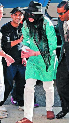 迈克尔·杰克逊奇怪造型外出 不戴披风穿拖鞋(图)