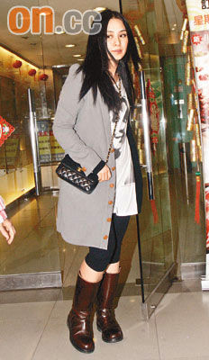 而“寿星女”阿娇则于凌晨四时十五分由友人陪同离开,留了一头长发的她,明显经过悉心打扮,一身灰色中褛配以长靴,斜挎Chanel手袋,还涂上彩蓝色指甲油,心情大好。