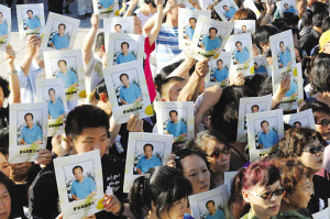 喜欢罗京的观众在网上自称“菠萝团”,“菠萝团”用200朵白玫瑰制成的花牌和纪念册表达自己的哀思,“主要是由罗老师的照片和菠萝们的祝福组合而成。这个纪念册的制作费是300多元,但制作方看我们是送给罗老师的,最后决定免费为我们制作。我们还做了一个心形花牌,由200朵白玫瑰和罗老师的照片组成。白玫瑰的花语是尊敬”,纪念册已经送到罗京家属手中。昨天现场“菠萝”们统一手系黄丝带,从凌晨5点就有人开车从天津赶到八宝山,“菠萝”里有老人、孕妇,也有刚高考完的学生。这些天来,喜爱罗京的众多粉丝自发在网上悼念罗京。网上献花、上香、写悼文者众多。罗京生前曾在一次晚会上唱过周杰伦的《千里之外》,有“菠萝”模仿《千里之外》为罗京写了一首《京哥走好》——“电脑刚打开,噩耗就传来,实在太意外;偌大中央台,数你最有才,偏偏患上癌;工作到现在,将近三十载,新闻你主宰……”记者 张艳