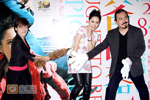 邵美君则送鸡毛扫给阿娇,寓意她横扫舞台剧坛。