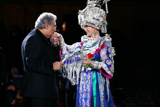 中新网7月2日电 6月30日晚,国家体育场灯火辉煌,人潮涌动,首届“中国北京鸟巢夏季音乐会”在这里隆重举行。宋祖英携手多明戈、郎朗、周杰伦跨界合作,放歌鸟巢,现场六万个座位无虚席,四大巨星的倾情演出为观众献上了一场艺术的饕餮盛宴。最让人拍手叫绝的是,宋祖英首次突破了以往恬静端庄的形象,现场大跳热舞,引来了全场观众的尖叫和欢呼,更迷倒了来自西班牙的68岁男高音歌唱家多明戈,使其激动得五次向宋祖英献吻。