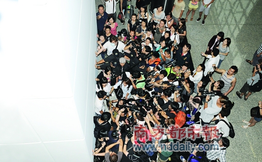 当天,刘德华现身机场抵港大堂,见到传媒和歌迷即双手合十,歌迷手挽手筑人墙阻记者接近,一场大混战后,刘德华最终肯停下受访。问是否很大压力?刘德华无奈说:“首先我是公众人物……”霎时激动眼红:“最近自己说谎的行为,令好多人失望,所以要公开和相信我的人道歉,希望他们可以原谅我,我只可以公开说,我是结婚了。”