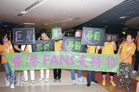 歌迷拉起巨型横额及纸牌以行动表达支持华仔的心。
