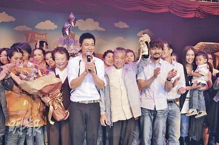 华仔与父母一同出席生日会,两老开心分享喜悦,欧阳妙芝(右)与儿子支持偶像