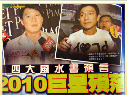 屋漏偏逢连夜雨,四位香港命理名师纷纷出书预言,2010年香港娱乐圈会有“巨星殒落”,姓刘的明星艺人,可能面对“凶险之象”。