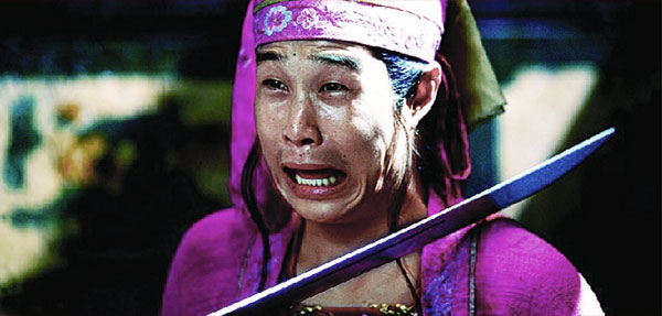不只是衣服,张艺谋连剧中的每个道具都要过问:马背上的皮带、演员手中的瓢,就连一个囊都要亲自检查一遍,细致到吹毛求疵。“我要彻底的鲜艳,所有颜色都要吓人一跳,我希望给别人炸开了的感觉,每个人看了都说,哎哟,怎么是这样子。所以,色彩完全不要按常规地去想,一定要强烈,绿是水绿、果绿,哪怕俗一点也好。”