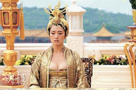 巩俐在《满城尽带黄金甲》穿上一袭性感低胸戏服令上围给人迫爆感觉。(资料图片)