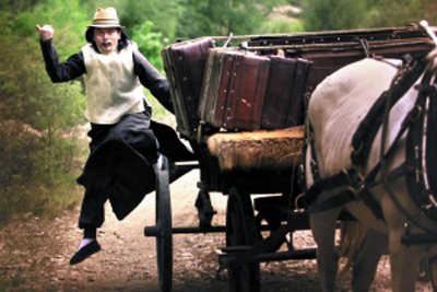 姜文新片《让子弹飞》昨天首度公布葛优(葛大爷)和“夫人”刘嘉玲造型。葛优长发礼帽,黑褂白衫,一身地主式打扮,“飞车”逃窜的动作让人忍俊不禁。相较之下,刘嘉玲扮演的夫人则是一身翠纱花褂短打,配紧身马裤,策马而立的造型英姿飒爽。据悉两人在片中扮演的是一对亡命天涯的骗子夫妻。
