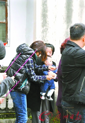 当日,胡静及夫家数十人赴梅州朱家祖坟拜祭,拜祭程序极其讲究,胡静在婆婆和老公拜祭后,为“小王子”取香祈福。期间“小王子”由保姆照看,非常乖巧,俨然成了家里的掌上明珠。