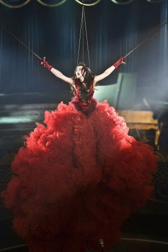范冰冰:这个独特的造型,是为了突出我在片中的另一个身份———仙乐门舞厅歌女,也是想在细节上表现角色“欢颜”的双重身份,是其“一半是兽,一半是鸟”的心理写照。