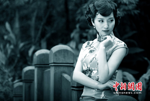 组图:陈好拍复古写真 穿紧身旗袍大展好身材 (5)
