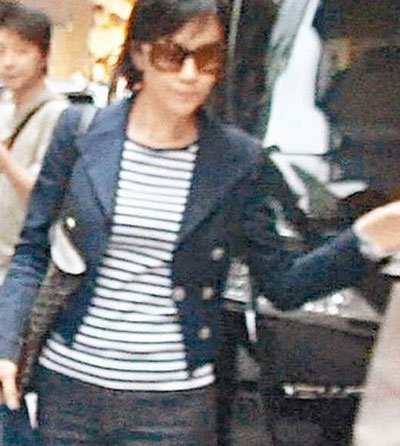 军装亮相黑超遮面 手持养性秘笈求生子(图)
