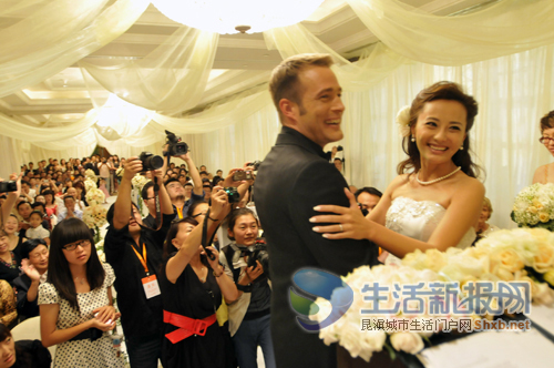 高调办婚礼二披嫁衣 与洋老公甜蜜拥吻(图)