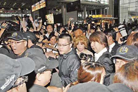 滨崎步在机场出现被逾百fans包围,引起大混乱寸步难移