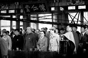委员们参拍的是第一届全国政协会议的场面,剧组负责人介绍,这场的主要剧情为周恩来宣布会议开幕、全体人员向为新政协作出努力的冯玉祥等人士默哀,并选举中央人民政府委员会。
