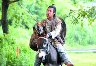 昨日记者探班的戏份是影片的开场:小沈阳饰演的凡人小鞋匠骑着毛驴准备闯荡江湖。只见小沈阳骑着毛驴一脸悠然自得状,一边用树枝吊起一根胡萝卜在毛驴的眼前摇晃。这场简单的戏竟然拍了6条才过,全因小沈阳总是让毛驴吃不到胡萝卜而将其“惹恼”,生气的毛驴每次都在同一个地点停下,任凭小沈阳怎样吆喝,就是纹丝不动,引得小沈阳频频笑场。而聪明的毛驴却在众人不注意之时,咬住胡萝卜便不松口。(特派记者孙琳琳)