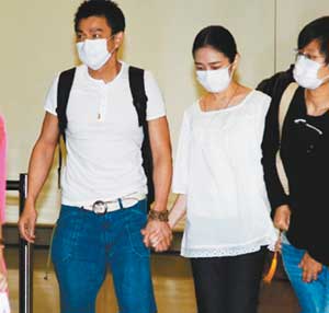 继前晚6点,两人首度公开牵手现身吉隆坡国际机场后,华仔与朱丽倩同晚10点多抵达香港,态度更加大方坦然,但眼见上百香港媒体推挤,一脸严肃的华仔全程小心呵护神情低调的朱丽倩,在媒体不断推挤的混乱中,朱丽倩始终紧贴华仔,这回不仅牵着华仔,另一只手更是紧紧抓牢华仔的腕,华仔也不时摸抚朱丽倩的手,回应她这段守了24年的爱情。