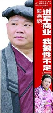 昨日,郭德纲接受本报专访,说起是不是效仿赵本山,他表示自己“进军商业狼性不足”。