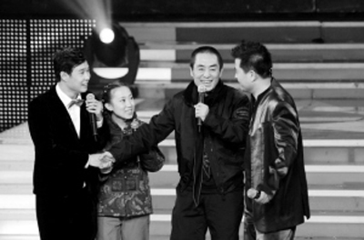 眼看唱主题歌的事要黄了,小沈阳和毛毛终于使出最后一个杀手锏:请出自己的舅姥爷,这舅姥爷并不是大病初愈的赵本山,正是《三枪拍案惊奇》的导演张艺谋。几乎“绝迹”综艺类节目,这次也算是为新片献出了综艺“处女秀”。至于为什么成了小沈阳和毛毛的舅姥爷,张艺谋的解释是,我和丫蛋的爷爷(指赵本山)是好朋友啊!有了舅姥爷的支持,小沈阳和毛毛接下来的表演更卖力了,他们和《星光大道》的选手李玉刚等,进行了一系列的PK,可最后的结果还是不分伯仲。看着这兄妹俩不停的闹腾,张艺谋最后发话了:“小沈阳,你也别在人家《星光大道》上胡闹了,就跟我走吧,不看僧面看佛面,看在丫蛋她爷爷的面上,《三枪拍案惊奇》的主题歌,就让你唱吧!”