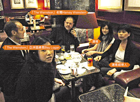 4月12日,汤唯与经纪人及助手在香港中环文华东方酒店与“韦恩斯坦”老板Harvey Weinstein会面。现场所见,汤唯的英语非常流利。发现记者后,她面带笑容,表现得体。在场的亚洲区总裁Bey Logan事后表示,Harvey Weinstein对汤唯大为赞叹。Bey Logan说:“那天我们和汤唯只是一次很简单的聚会,主要是想先了解一下她。她是一个不可多得的人才,会讲广东话、普通话和英文,很不错。”问到是否已有好莱坞导演邀汤唯合作,他说:“一定有啦!如果有适合的角色,我们肯定会找汤唯。”