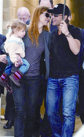 18日,妮可·基德曼与歌手老公凯斯·厄本带着女儿一同返回澳大利亚悉尼,见自己的父母。妮可一脸幸福怀抱女儿,老公则在一旁为母女俩撑伞,关爱备至。妮可表示,今年的圣诞节她将与家人在家乡小镇一起度过。(西西)