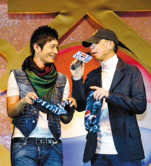 昨天,冯小刚、黄晓明为某饮料拍摄的贺岁广告片首映仪式在北京举行,冯小刚、黄晓明在广告片中饰演父子。