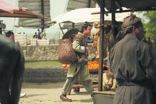 在昨日上午的开机仪式上,小沈阳就以一身古代鞋匠的落魄装扮出现,连脚下的布鞋也是破破烂烂的感觉。小沈阳换上造型之后自己也忍俊不禁,尤其喜爱分配给他的道具——斗笠和竹编大筐,连候场时也不离身。