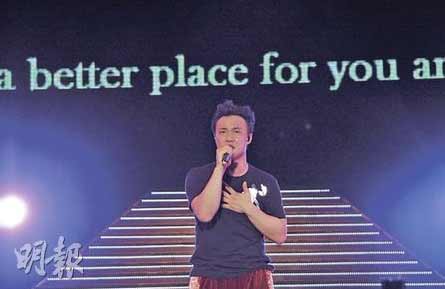 “明报”消息,Eason说日前深夜看MJ的追悼会,听到好多不同歌手演绎他的歌曲,非常感动,MJ真的是一个传奇。为此他选唱自己很喜欢的MJ歌曲,向这位影响全世界音乐文化的巨星致敬。
