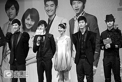 无论是在“快女”的舞台上还是离开 “快女”,“绵羊天使”曾轶可始终是人们关注的焦点。金牌制作人高晓松看好她的商业价值,而作为“娘家”的湖南卫视和天娱公司自然更重视这个闪闪发光的 “金子”。昨日下午,在两家单位联手打造的自制偶像剧《一起来看流星雨》发布会上,曾轶可闪亮现身,其人气远远超过该剧的主角内地版F4。
