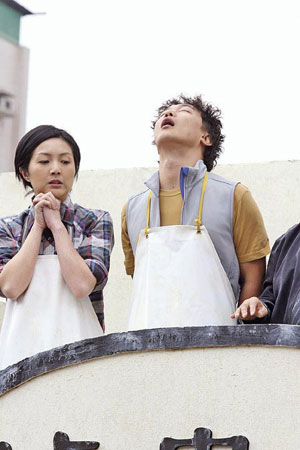 之后Eason跟千嬅要爬上屋顶拍摄列队敬礼镜头,千嬅要冒着寒风与Eason的替身试位,但她毫无怨言。正式拍摄时,千嬅见Eason病得没精打采亦不敢引他大笑,就位前还叫病得虚弱的他坐下休息。其它演员见Eason累得要不时倚靠石头休息,也不时对他特别照顾,为他披上外套以免再冷亲。至真正拍摄时,Eason即轻拍面额强装精神便投入大笑敬礼,结果同样以4Take完成戏分。