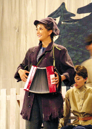 由严歌苓的著名小说《一个女人的史诗》改编的同名电视剧正在安徽芜湖热拍,这也是赵薇和刘烨相识12年来首度演对手戏。第一次荧屏合作就演了一对一生一世的夫妻,两人皆笑言“缘分不浅”。该剧由第五代导演夏钢操刀,目前已拍摄过半。前天,记者到剧组探班时正看到久未露面的赵薇头戴军帽,衣衫褴褛,以流浪儿的样子出现———原来,她正在排练“戏中戏”前苏联话剧《以革命的名义》。