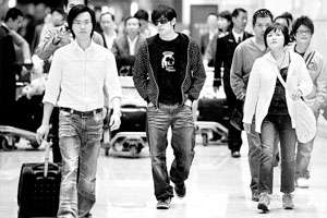 “周杰伦,是周杰伦,还有潘玮柏。”周杰伦和潘玮柏出现在新建的机场三号航站楼时,引起一阵骚动。