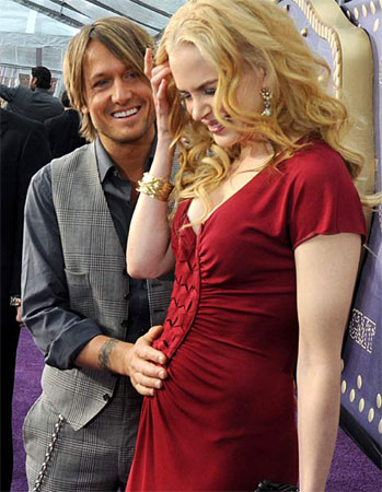 前天妮可·基德曼与凯斯·厄本连袂走上乡村音乐电视奖颁奖典礼红地毯,两人手牵着手显得很亲热,凯斯·厄本还不时摸摸妮可·基德曼隆起的腹部,脸上洋溢准爸爸的喜悦。