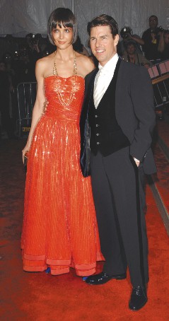图文:凯蒂火红长裙亮相 阿汤哥成了"小矮子"