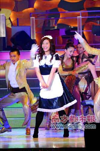 随着胡枫一声大喊:“欢迎光临丽花皇宫,”恍惚又回到了当年肥姐的丽花皇宫时代。刘雅丽、陈洁灵开始大秀歌舞,一身女佣打扮的欣宜则作为招待在招呼客人,看到别人载歌载舞心痒痒,于是跳出来主动要求表演,结果还穿着女佣服装的她又唱又跳了一曲《我要》,赢得众人的掌声。接下来,欣宜又换上黑色连身裙唱了一曲《IWILLFOLLOWHIM》以及《劲草娇花》,引得不少观众在座位上大叫“欣宜,欣宜”。