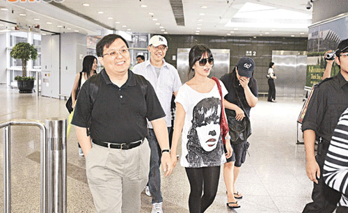 而专程到场接机的老板张家振和唐在扬,见到宋慧乔后即礼貌地上前握手及打招呼,现场还有两名保安人员开路。前往登车期间,宋慧乔并不时露出友善笑容。