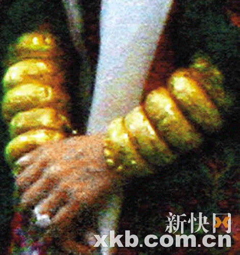 嘉玲手上的龙凤镯和钻戒分外抢眼。