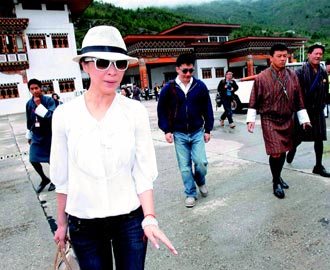 中新网7月25日电 梁朝伟(伟仔)和刘嘉玲昨天一早搭私人飞机飞离不丹,这是他们婚后首度公开露面,上午11时半即飞抵印度新德里。一对新人心情靓到极点,即使媒体冲入不丹机场的VIP室拍照也未遭驱赶,同行的林青霞被问到是不是要当“电灯泡”?她笑而不答。