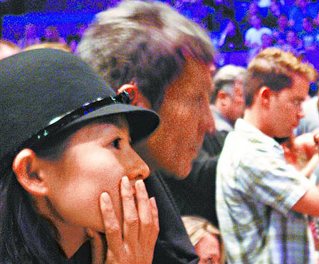 2008/08 倒挥国旗:前往观赏北京奥运,大挥国旗,却没发现国旗图案是颠倒的