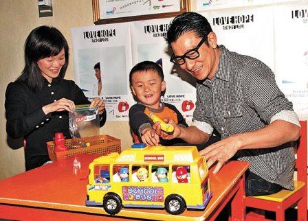 昨日华仔于港威酒店与有语言障碍的儿童见面,陪他们学习说话,华仔对几岁的小朋友尽显慈父本色,还很有耐性跟小孩玩耍和练习说话,与小孩沟通全无问题。