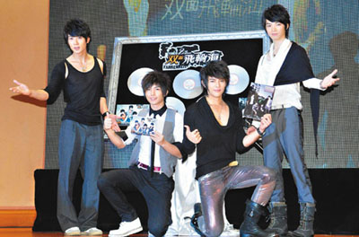 飞轮海今天与5566同日发片,加上已发片的F4和棒棒堂,男团大战一触即发。