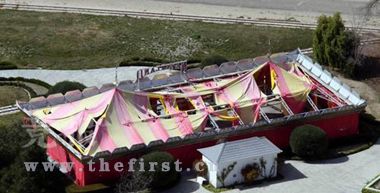 园内现在已经一片残败,成为荒芜之地。关动物的笼子里空荡荡,曾经在这里安家的老虎、大象、鳄鱼、骆驼等已纷纷被杰克逊圈中好友以低价收养,只剩下一对小羚羊孤零零地待在里面,花园里的小帐篷大多已经坍塌,草地上到处是枯枝败叶,这一切似乎都在凄凉地映衬着主人杰克逊日落西山的事业。