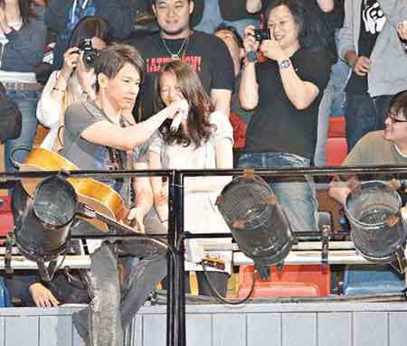 陶喆与女歌迷合唱。香港东方日报图。