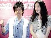 惜字如金的王菲在留言板前虽然没有说话,但是一直微笑着与李健合影。
