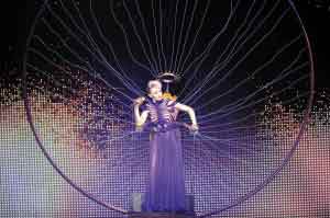 凯莉·米洛6日在巴黎为其《X》巡回演唱拉开序幕,她身穿百万元的高衩紫色雪纺裙出场,胸口的条纹设计十足蜘蛛腹部,而且舞台设计也很特别,背景是一个巨型蜘蛛网,发光的蜘蛛丝更缠绕她的手及头,效果夺目。凯莉整晚共换了9套衣服,包括啦啦队衫及水手装,这些服装全由Jean Paul Gaultier设计。当晚凯莉旧爱奥利华及绯闻男友戴维·添南亦有捧场,曾被传与奥利华复合及结婚的凯莉,虽然否认传闻,但奥利华的出现,足以证明二人关系不寻常。
