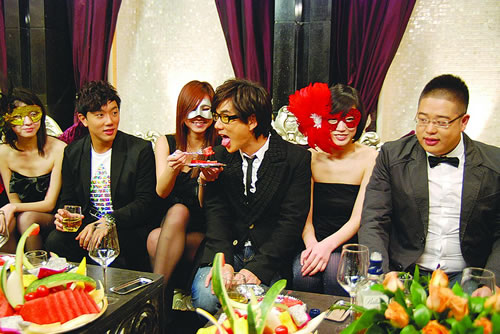 据悉,《气管炎》MV邀得20名辣妹在豪华KTV出演,工作人员透露,包厢里的20名辣妹,在导演要求下戴上狂野面具、穿着低胸短裙,周旋在小齐周围,还热情的喂食西瓜。而任贤齐则形容“这是我拍过最享受的MV,虽然看得到、吃不到,但要收工时还会依依不舍咧!”