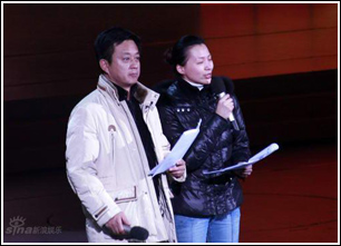今年春晚主持人的出场方式与众不同,记者在现场看到,开场歌舞《飞向春天》跳到一半时,朱军、董卿、李咏、周涛、张泽群、刘芳菲6位主持人“从天而降”,用特殊的方式给全国观众拜年。如果说往年“4+2”的主持人模式让观众有些“审美疲劳”,那么白岩松、毕福剑的加入无疑增添了新看点。一贯嬉皮笑脸的毕福剑要介绍《星光大道》的年度总冠军、盲人小伙杨光出场。平日里喜好板脸说事的白岩松要采访王宝强,引出《农民工之歌》。不过,将在今年春晚上一人表演两个节目的王宝强并没有参加联排。