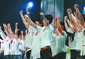 募捐晚会现场,众星齐唱《爱的奉献》。 图/央视国际